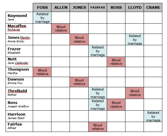 As noted by Godden, philanthropic organisations involving substantial numbers of women often had significant economic, social and family networks within them.[4] Some of those family networks connected with the SFRS emanated from the Pitt Street Congregational Church in which ‘the families of Ambrose Foss, John Fairfax, David Jones, Randolph Nott, James Reading, James Thompson, Robert Bourne, George A Lloyd, R.A. Wilshire and Lancelot Threlkeld were linked in a complex web of marital alliances’.[5] Because of the strong involvement of Congregational Church members in the SFRS, these family alliances were also present in the SFRS. Some of those SFRS alliances are illustrated in a simplified form in Figure 3 together with some other family relationships, ‘related by marriage’ and ‘blood relative’, which existed within the membership of the SFRS with other prominent philanthropic families of the time. The effect of this family network structure was to strengthen the links and contacts that members of the SFRS, had beyond the Society.