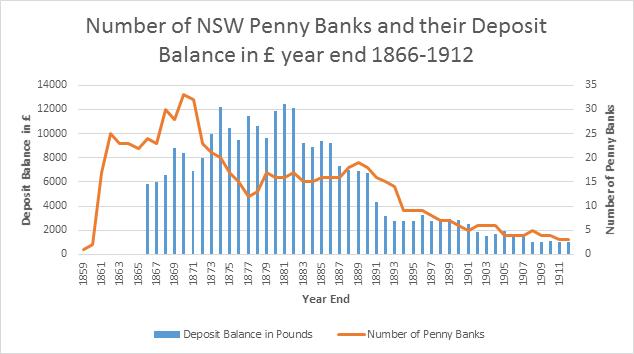The records of the existence of particular PBs are fragmentary with the main source of information being the annual deposit balance reports in the Government Gazette from 1866 to 1912,[33] newspaper reports and advertising. While these records are fragmentary and incomplete, as undoubtedly many unreported local small penny banks existed, certain trends can be discerned.