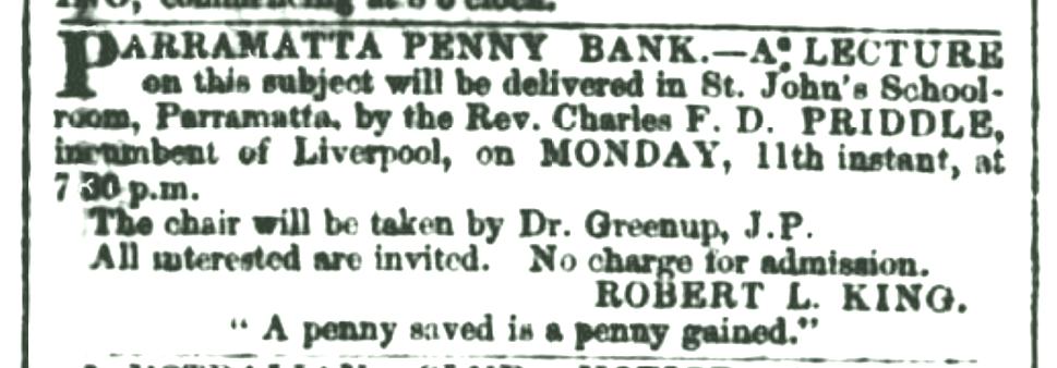 Such are things today, but I want to take you to a happier banking time which was motivated not by profit but by philanthropy; to the time of the Penny Bank. “A penny saved is a penny gained” was a slogan used in NSW to promote the formation of Penny Banks and to encourage the poor to bank very small sums.