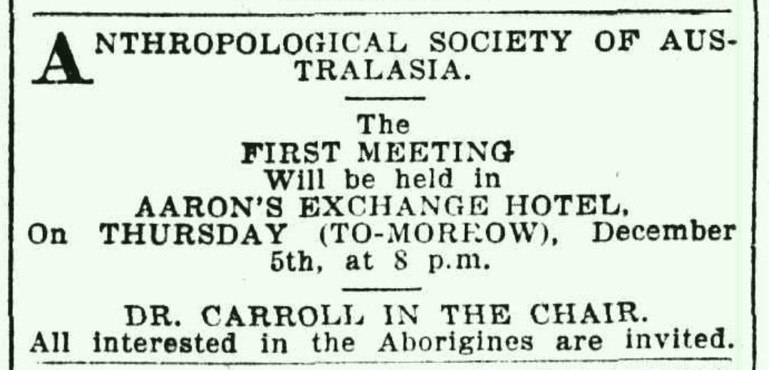 During his time in Australia, through his confident enthusiasm, Carroll became a populariser of the discipline of Anthropology. In December 1895, he founded the Anthropological Society of Australasia with a special interest in Aborigines. To further his purpose to spread the knowledge of Anthropology, and to give himself a platform, he founded the Australasian Anthropological Journal, also known as the Science of Man Journal (SOMJ), in December 1886.[96]