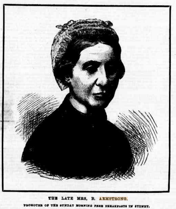 Andrew Bell Armstrong was born in Ireland around 1811 and died in Sydney on 17 June 1872, at 61 years of age.[1] Andrew married Barbara Iredale on 20 July 1844 in Sydney[2] and they were to have three children: Mary (b 1846), Thomas (b 1849) and John (b 1851). Barbara was to prove to be a willing partner in Andrew’s philanthropic efforts. Barbara Iredale was 28 years old on her arrival in the colony in 1842. She came with her mother and father, and she had with her a daughter, Sarah, from a previous relationship who was born in 1841. Sarah would later marry WS Buzacott who would be Andrew’s business partner.